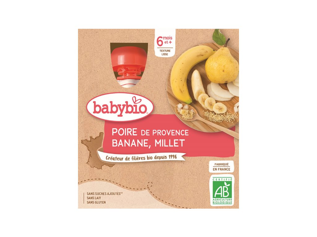 BABYBIO HRUŠKA, BANÁN A PROSO, 4x90 g
