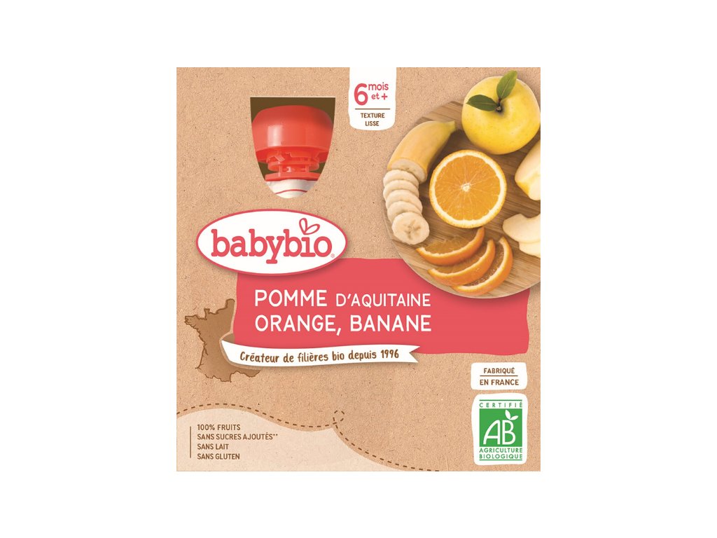 "Bio výživa pre dojčatá od ukončeného 6. mesiaca. Jablká a banány k sebe skrátka pasujú. My sme celý príkrm ešte vylepšili šťavou z tých najsladších pomarančov. Všetko šikovne zabalené vo kapsičkách, ktoré využijete doma aj na cestách.Výrobok ekologického poľnohospodárstva. Určené na zvláštnu výživu dojčiat a malých detí. Bez pridaného cukru. Bez palmového oleja. Bez pridanej soli. Bez chemických konzervačných látok, dochucovadiel, zahusťovadiel a farbív. Garancia Babybio: Ekologická výživa pre dojčatá. 25 rokov odborných skúseností. Známy pôvod surovín. Receptúry vyvíjané v spolupráci s francúzskymi pediatrami a nutričnými odborníkmi. Vyrobené vo Francúzsku. Balené v ochrannej atmosfére. Obaly neobsahujú BPA. Každá novo vyrobená výrobná šarža podlieha laboratórnemu rozboru priamo u výrobcu, než je uvoľnená do predaja."