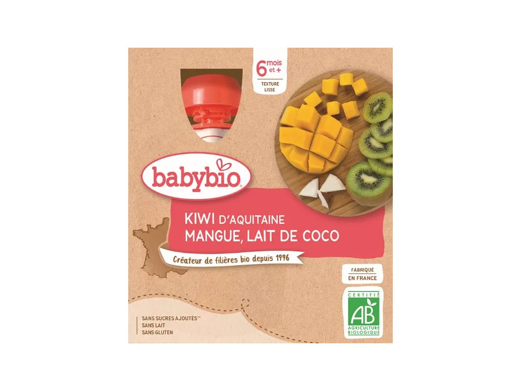 BABYBIO KIWI MANGO A KOKOSOVÉ MLIEKO, 4x90 g