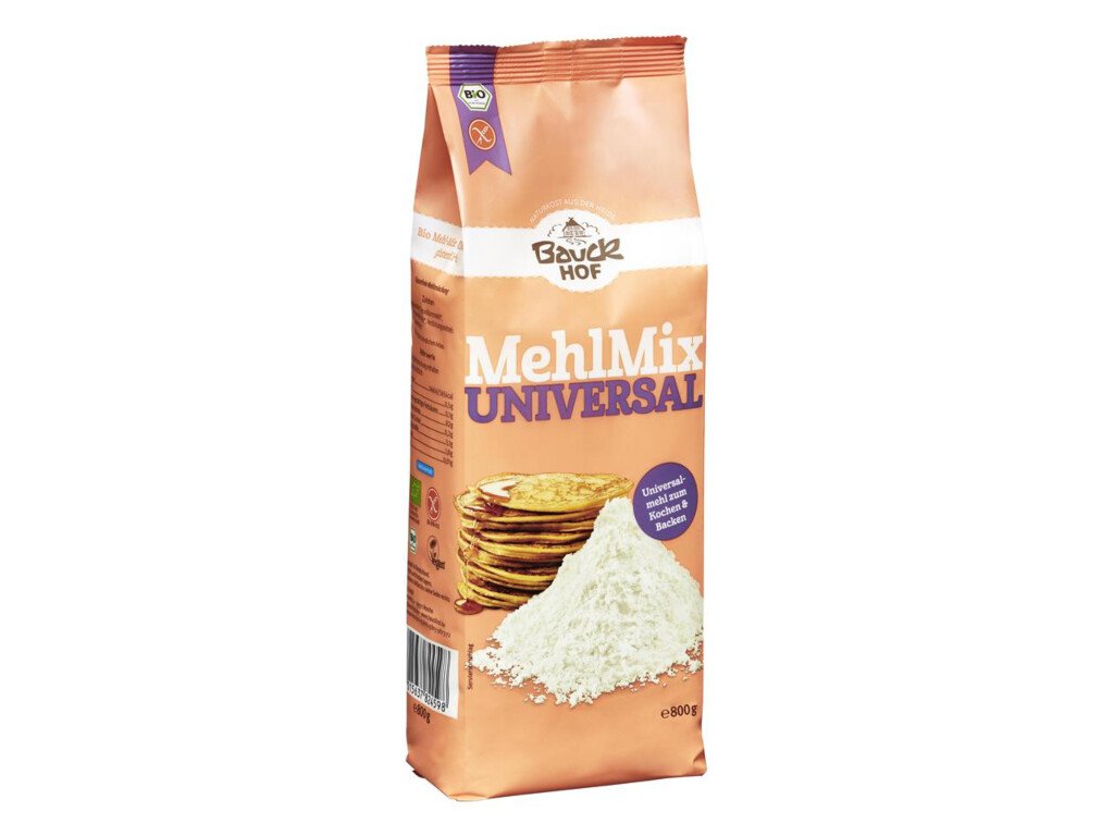 Bezlepková univerzálna zmes:Zloženie: Kukuričný škrob, ryžová celozrrná múka, celozrnná múka z prosa, zahusťovadlo guarová múka.