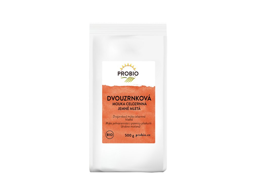 BIO DVOJZRNKOVÁ CELOZRNNÁ MÚKA, JEMNE MLETÁ 500 g