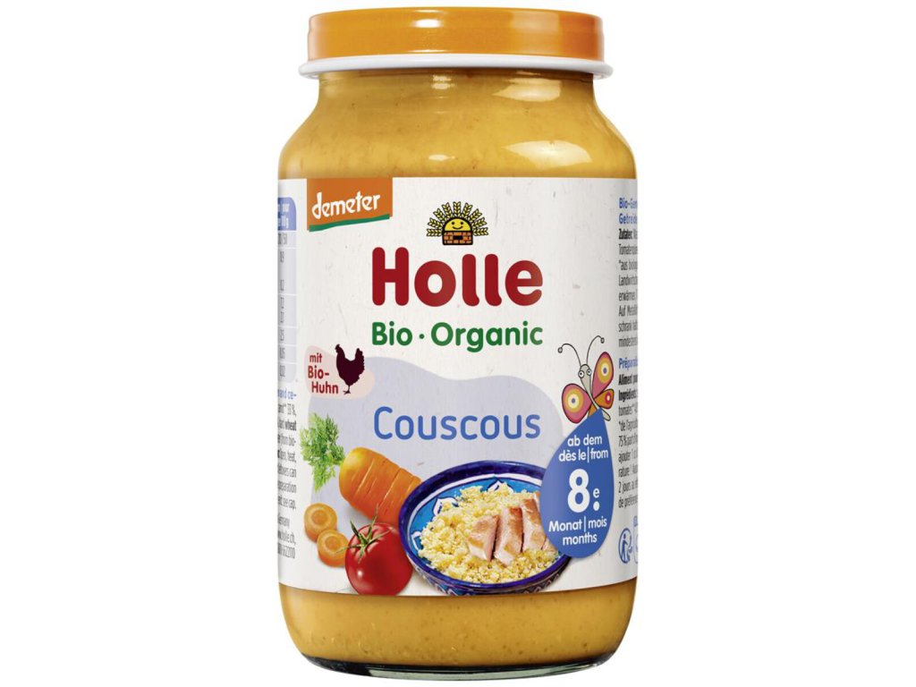 BIO ZELENINOVÁ VÝŽIVA – KUSKUS CESTOVINA s obsahom zeleniny (mrkva, paradajky fenikel) a kuracím mäsom, hruškový pretlak, ryžová krupica, krupica z tvrdej pšenice, od ukončeného 8. mesiaca veku, Certifikácia DEMETER – starostlivo vybrané a prísne kontrolované suroviny pochádzajúceho z biodynamického poľnohospodárstva.- Prirodzene jemná chuť,