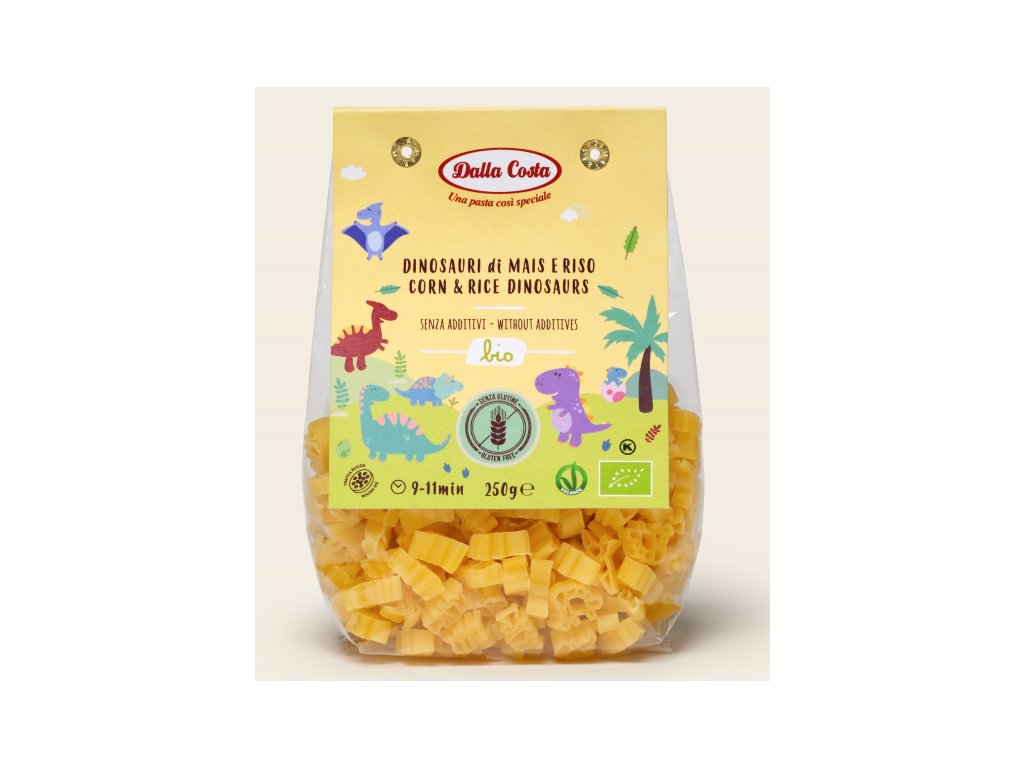 CESTOVINY PRE DETI BIO DALLA COSTA, BEZLEPKOVÉ CESTOVINY DINO, 250g