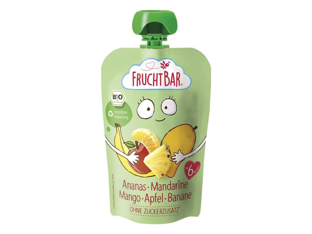 FRUCHTBAR BIO ANANÁS, MANDARÍNKA, MANGO, JABLKO A BANÁN, 100 g