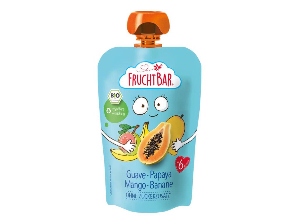FRUCHTBAR BIO MANGO, GUAVE, PAPÁJA A BANÁN, 100 g