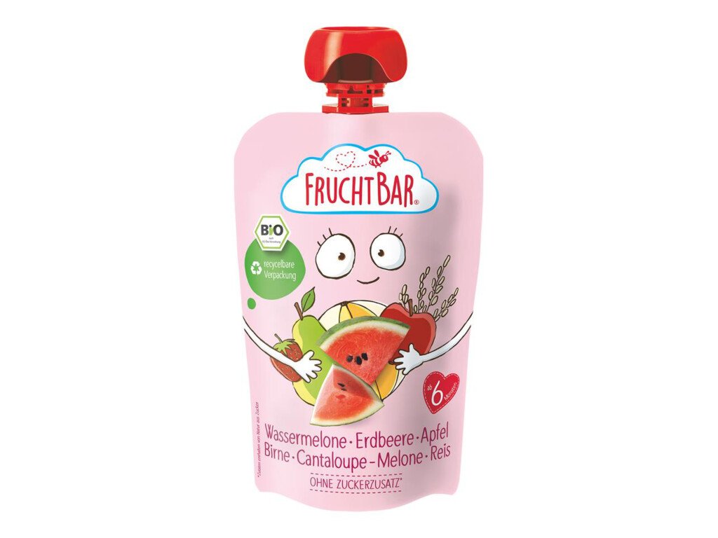 FRUCHTBAR BIO MELÓN, JAHODA, JABLKO, HRUŠKA, MELÓN A RYŽA, 100 g