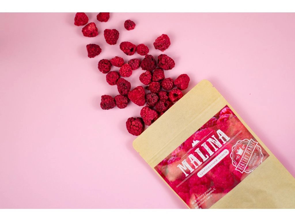 Zloženie: 100% maliny dehydrované procesom lyofilizácie (proces sušenia mrazom).