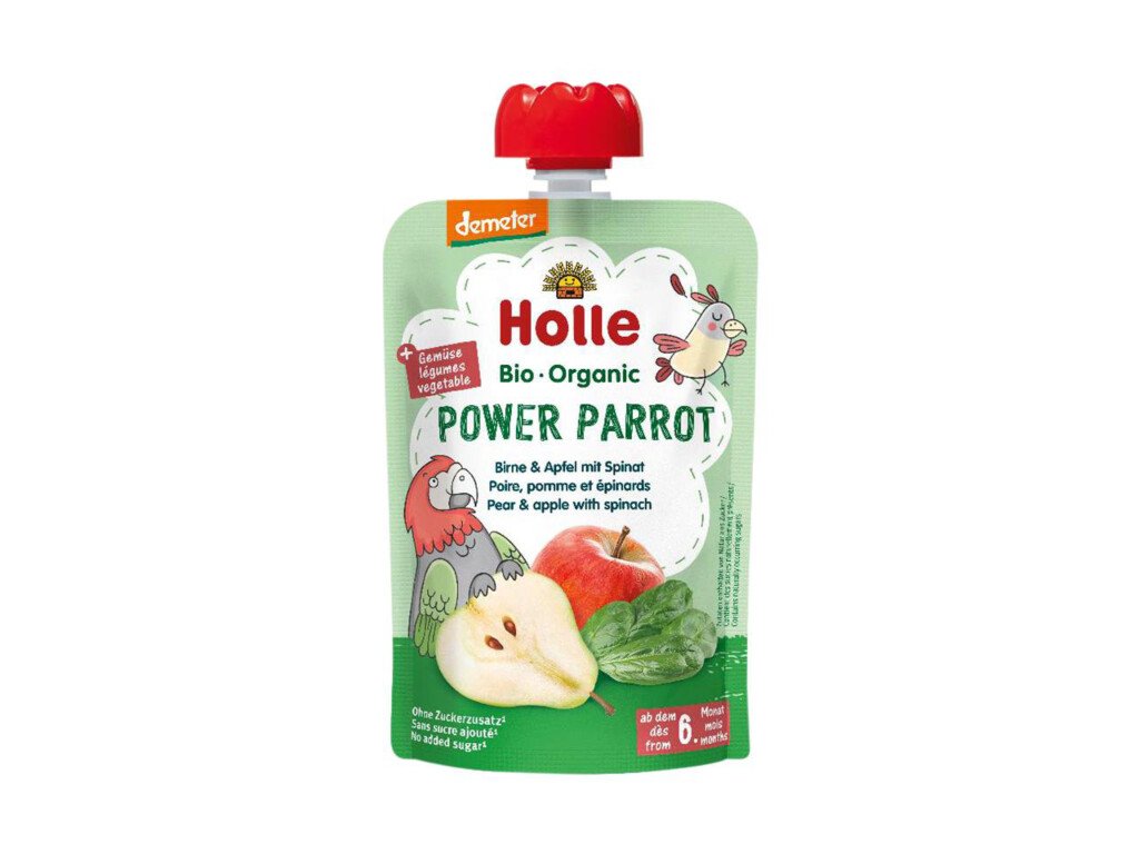 HOLLE BIO POWER PARROT – HRUŠKA, JABLKO SO ŠPENÁTOM, 100g