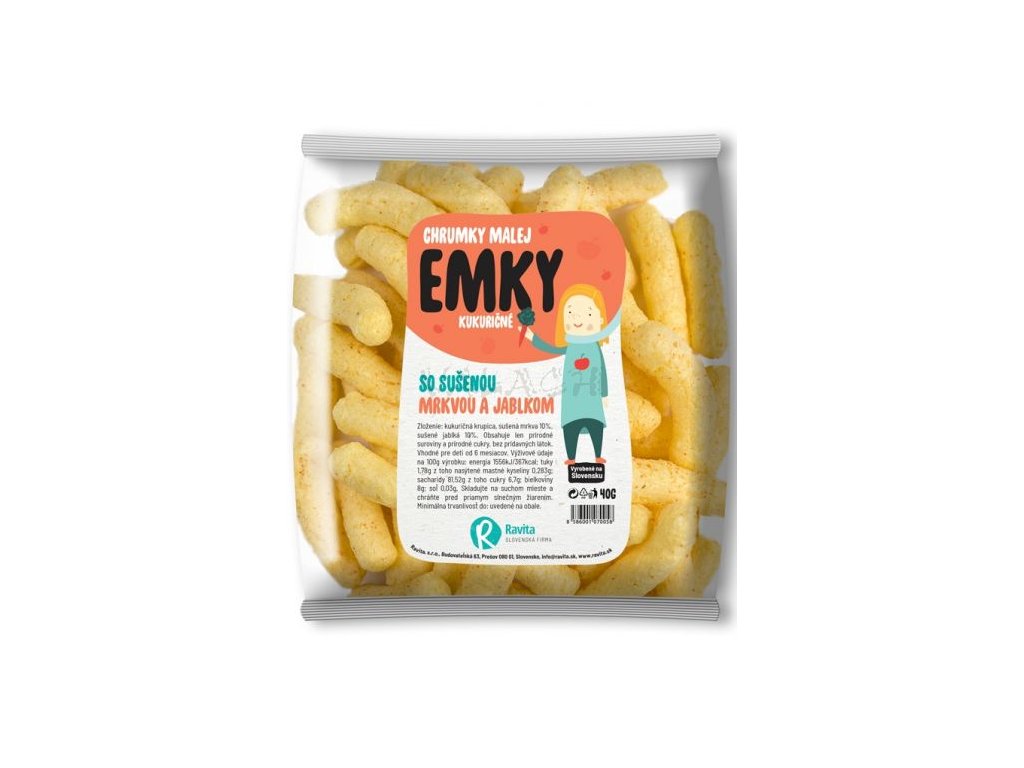 RAVITA KUKURIČNÉ CHRUMKY MALEJ EMKY MRKVA A JABLKO, 40g