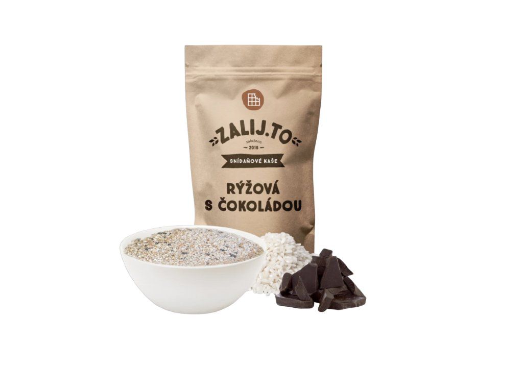 Ryžová kaša s čokoládou sa pýši prvenstvom v kategórii bezlepkovej kaše Zalij.To, avšak aj napriek tomu spĺňa všetky štandardy kaší Zalij.To: bez pridaných cukrov, škrobov a zahusťovadiel. Že to znie, až veľmi dobre? Tak to si ju ešte neochutnal/a, pri testovaní padali slová ako: krupicová kaša alebo spomienky na detstvo.Zloženie: 100% extrudovaná ryža, kešu orechy, kokos, lieskové jadrá - lúpaná, 81% čokoláda (kakaová hmota, cukor, kakaový prášok so zníženým obsahom tuku, emulg. slnečnicový lecitín , vanilkový extrakt); ľan zlatý, vlašský orech, chia semienka , kokosový nektár.